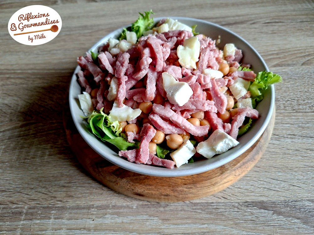 Salade de semoule aux pois chiches, bacon et chèvre